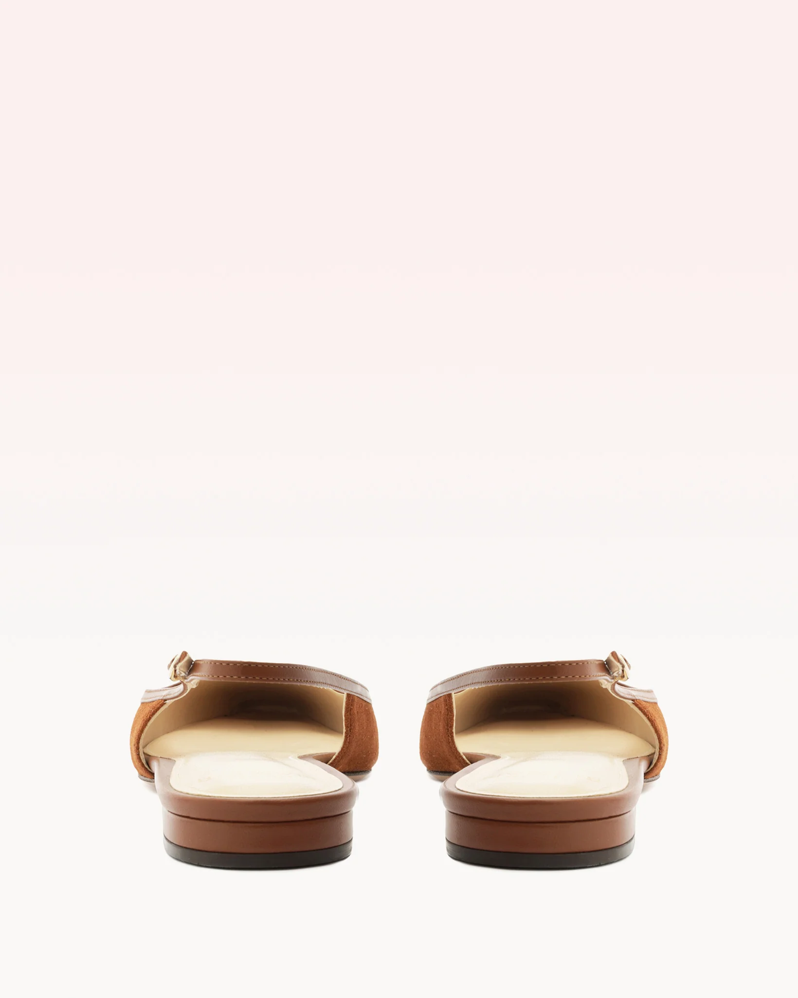 This slingback flat style exhibits a delicate and alluring design. It features a longer square toe that exudes elegance, complemented by a metallic captoe in a soft gold hue. The slender strap, fastened delicately with a buckle, ensures a personalized and secure fit. This shoe merges sophisticated style with a touch of retro allure, offering versatility and charm in every step.
